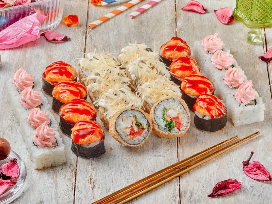 Калифорнийский закат, Филадельфия Лайт, Фаворит с креветкой, Аригато с семгой