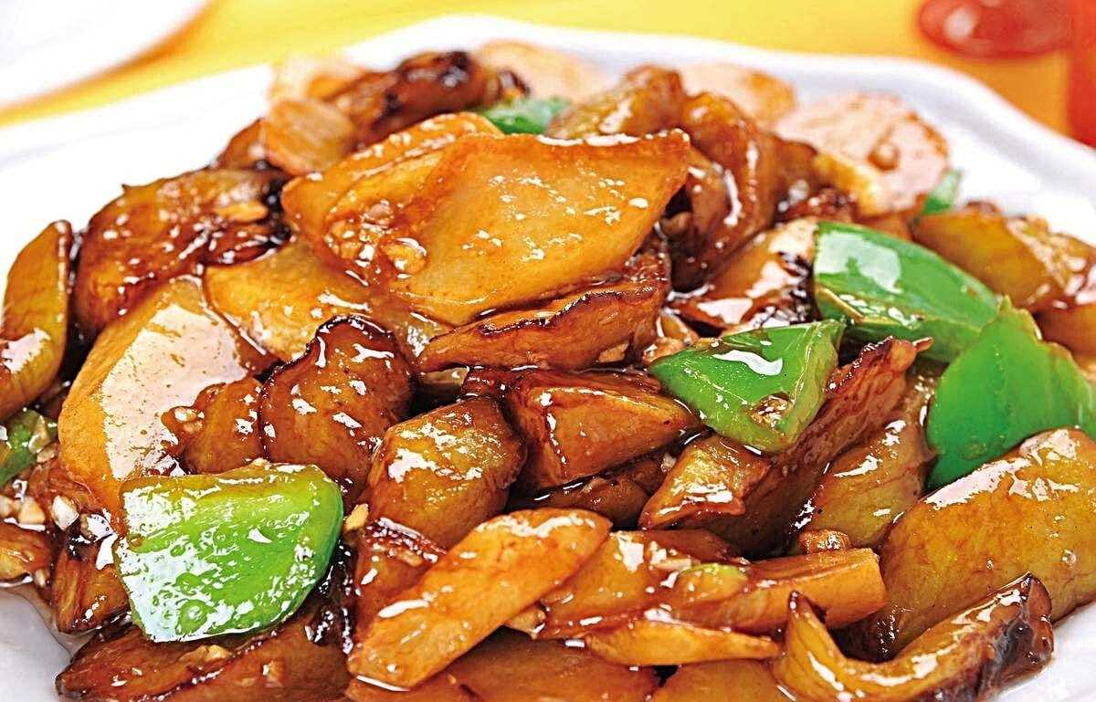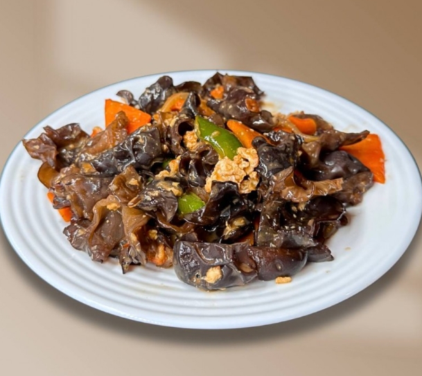 Свинина, болгарский перец, морковь, древесные грибы, кисло-сладкий соус