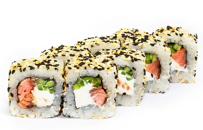 Копченый лосось, сыр, свежий огурец, кунжут