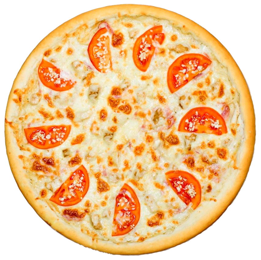 Тесто, томатный соус, сыр моцарелла, прованские травы, куриное филе, помидор (32 см)