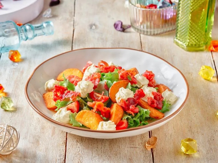 Лист салата, бекон, черри, картофель айдахо, соус чесночный